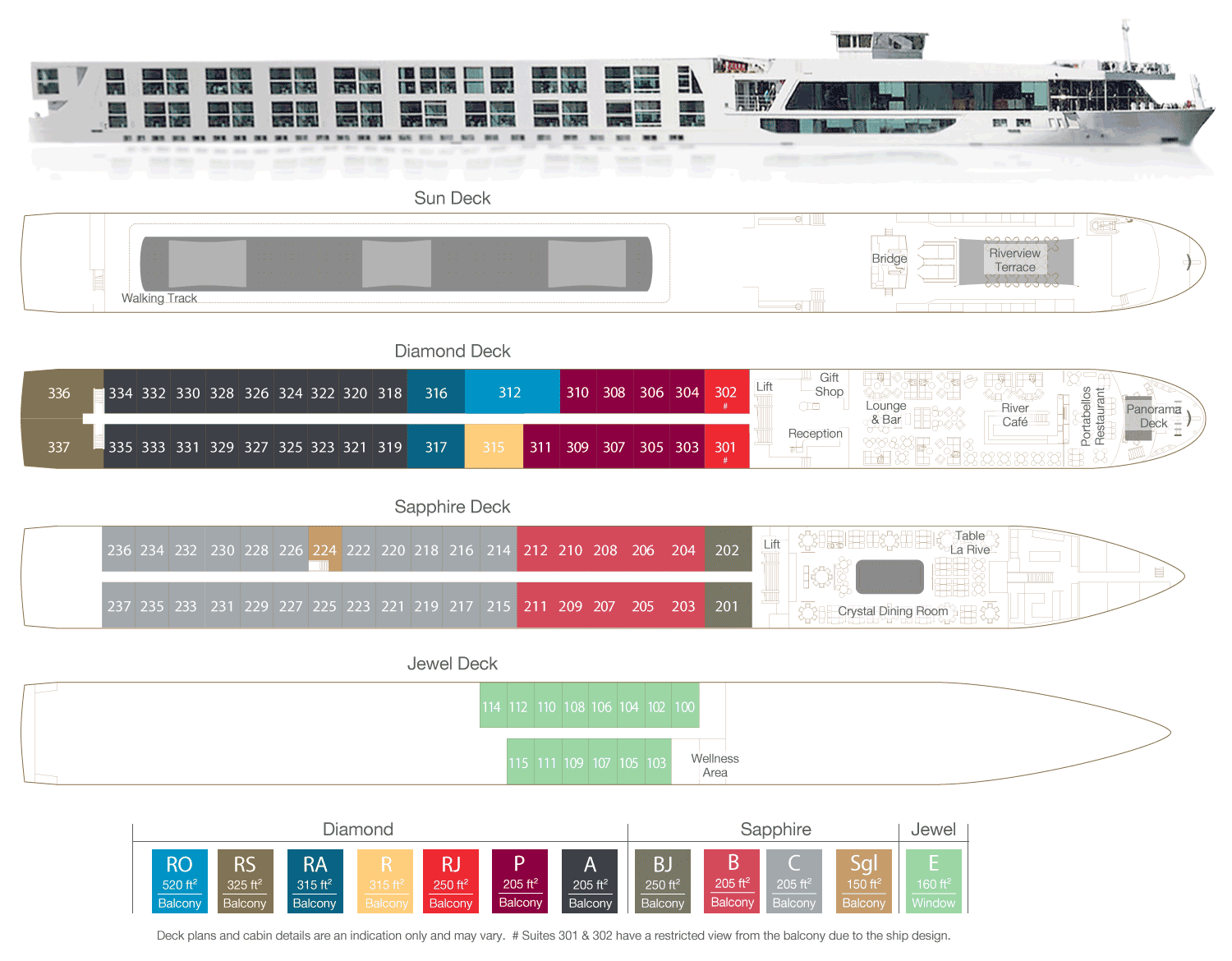 | Cat RP | Upper Deck | Royal Panorama Suite, 475 ft², Outside Balcony | Please Call | ||